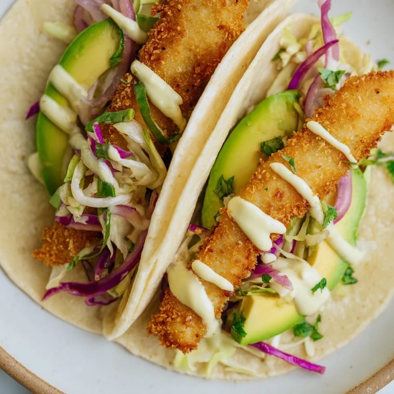 Save These tacos have become my impromptu dinner party secret because I can prep everything ahead and just fry the fish when people arrive. Watching someone take that first bite, eyes widening at the crunch, then the sauce hitting their tongue, that's still my favorite part of cooking.