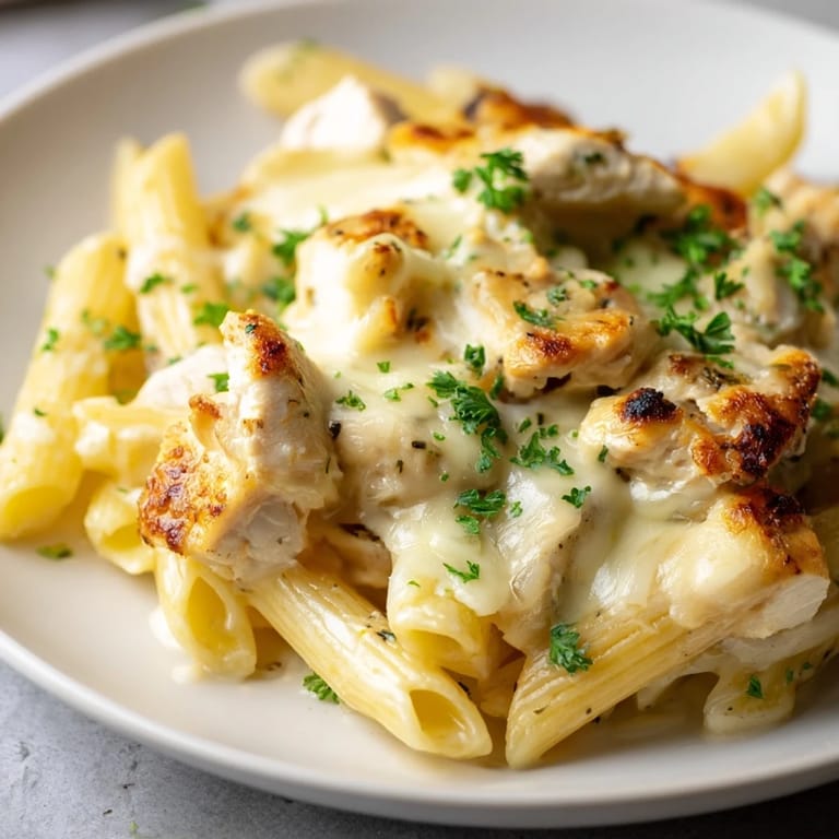 Save The smell of bubbling cheese and garlic always pulls everyone into the kitchen. I started making this chicken Alfredo bake during those busy weeknights when something warm and comforting felt absolutely necessary. My roommate used to hover around the oven, spoon ready, asking if it was done yet. Now it's the dish that disappears first at potlucks, with people asking for the recipe before they've even finished their first bite.