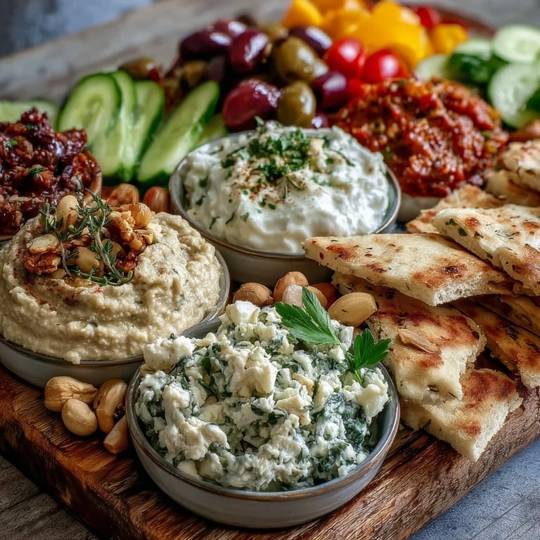 You can make all four dips up to two days ahead and store them in airtight containers. The tzatziki actually benefits from resting for at least an hour to let the flavors meld. Slice vegetables and arrange garnishes just before serving to keep everything fresh and crisp.