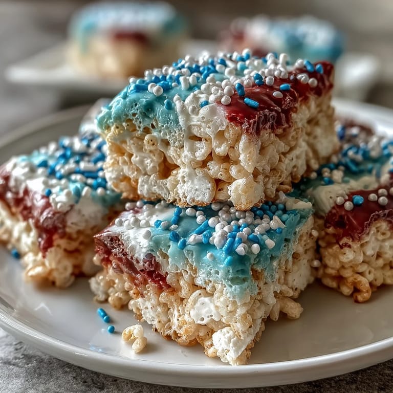 This recipe carefully divides the marshmallows and butter to create three distinct layers with vivid color and classic flavor. Each layer is formed separately to maintain its eye-catching hue and chewy texture, making serving a patriotic treat simple and impressive.