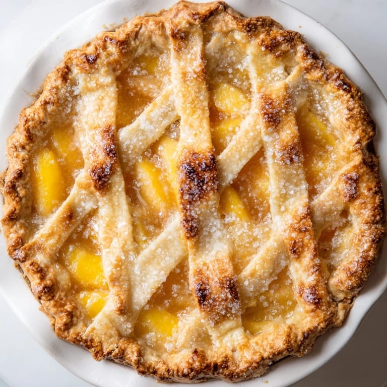 Save This was the first pie my grandmother taught me to make properly, standing at her tiny kitchen counter with peaches from her backyard tree. She had this rule about never rushing pastry and I can still hear her voice telling me to trust my hands more than the recipe. Now whenever I smell baking peaches, I'm transported back to that afternoon, flour everywhere, learning that some things are worth every minute of careful work.