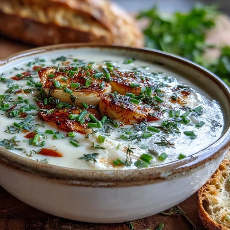 Save There's something almost magical about roasting garlic until it transforms into these glossy, sweet cloves that smell like pure comfort. I discovered this soup on a particularly gray autumn afternoon when my kitchen felt too quiet, and I wanted something that would fill the entire house with warmth. The first time I made it, I nearly burned the garlic because I forgot it was in the oven, but that happy accident taught me that even slightly caramelized edges add complexity to the final bowl. Now, whenever I make this, the aroma alone feels like an invitation to slow down and actually enjoy cooking.