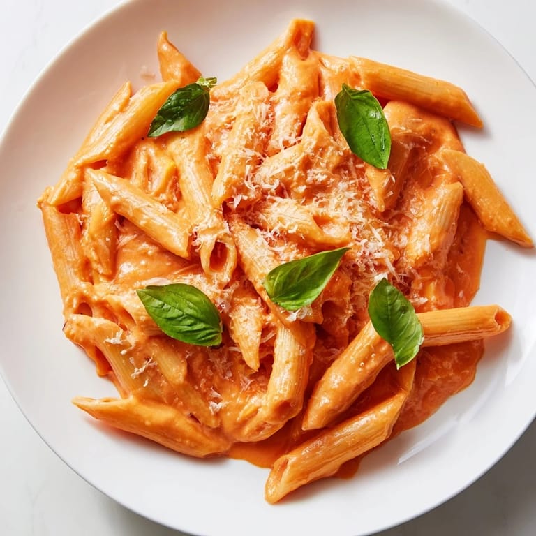 Save My neighbor brought over a jar of her homemade roasted red peppers one August afternoon, and I stared at it for days before deciding to blend them into pasta sauce. The kitchen smelled like summer and smoke as the cream swirled into that bright red purée, turning everything soft and sunset-colored. I tossed in hot penne straight from the pot, and the sauce clung to every ridged edge. My kids appeared in the doorway, asking what smelled so good, and I knew I'd stumbled onto something we'd make again and again.