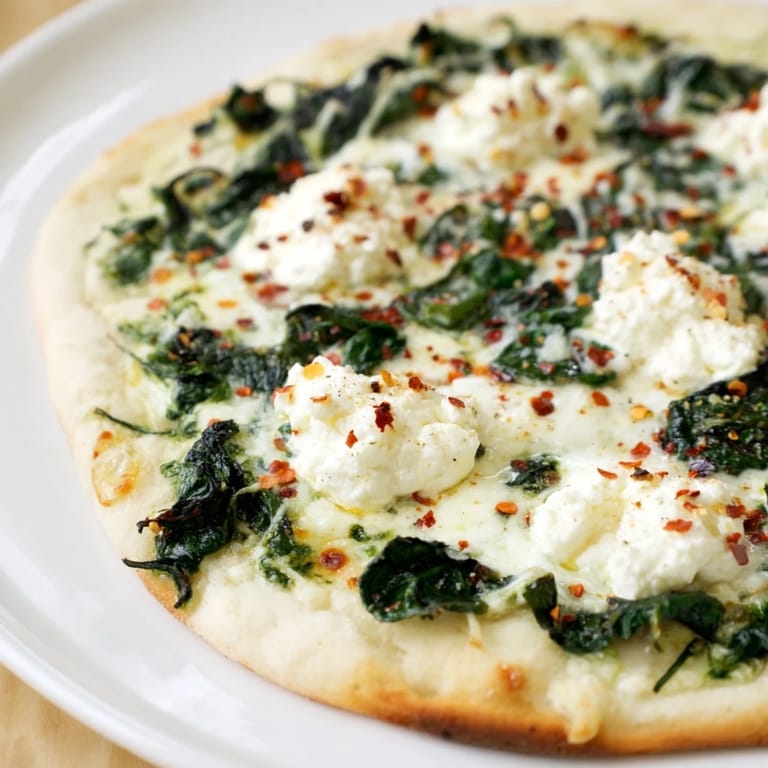 Save The kitchen was warm from the oven, and I was standing there with a bowl of ricotta, wondering if cheese on cheese was too much. My friend laughed and said it was never too much when it came to pizza. That night, we brushed garlic butter on a thin crust, piled on spinach that smelled like olive oil and salt, and baked it until the edges crisped and the ricotta turned golden in spots. It became my go-to whenever I wanted something that felt indulgent but didn't weigh me down.